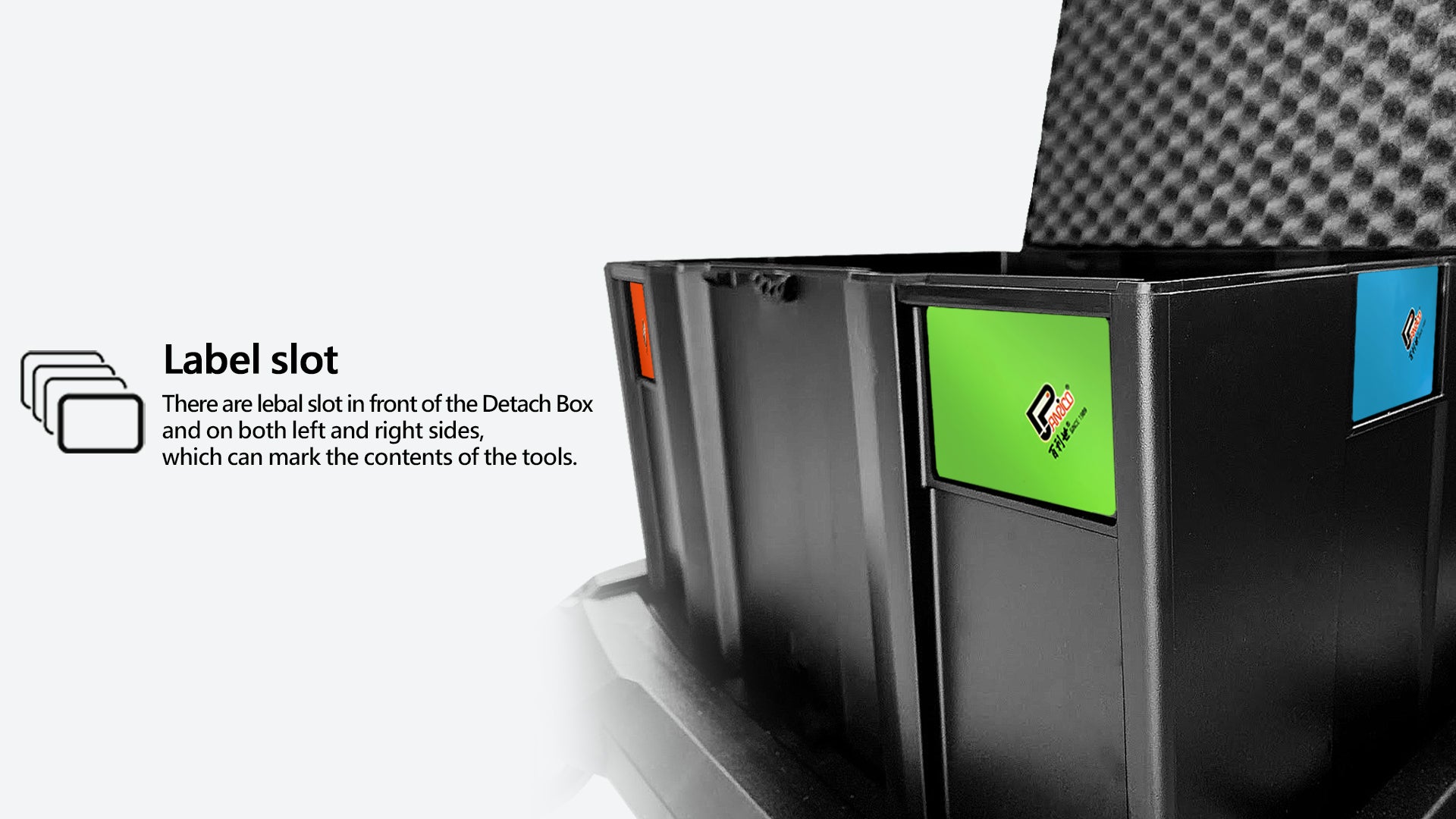 - Portable Storage Box has 4 label slots on front and both sides to put the label cards in for showing the contents of the tools inside the Detach box.